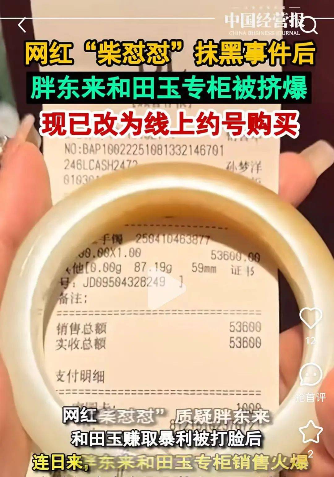最近胖东来和田玉专柜销售火爆,多位代购称这几天基本还不到中午,和田玉就售罄了。